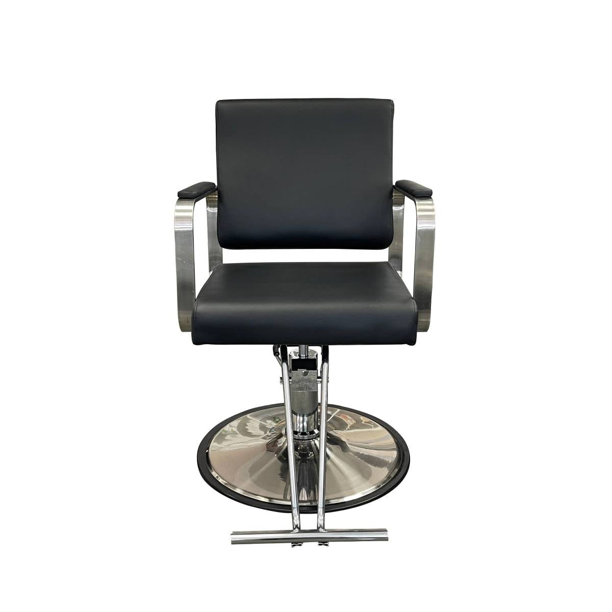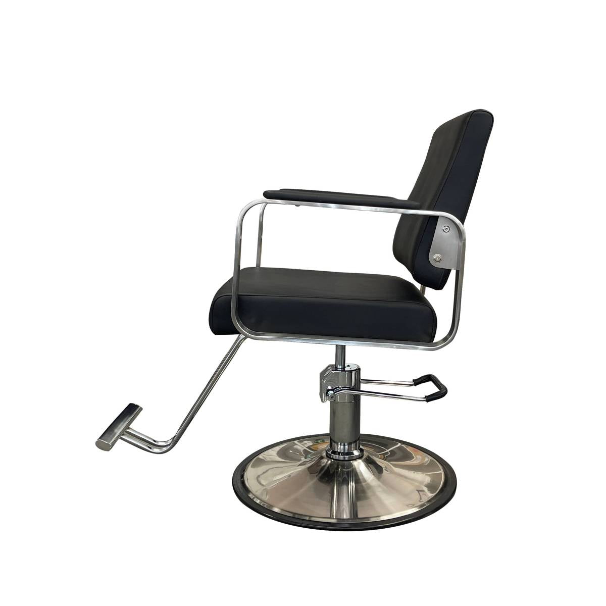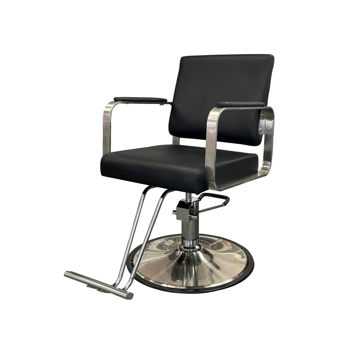 The Davis Salon Styling Chair by Golden Devon (D-663) embodies both sophistication and style. Completely covered in smooth vinyl, the Davis features a modern stainless steel T-bar footrest, capped armrests & high density foam cushioning for maximum comfort.