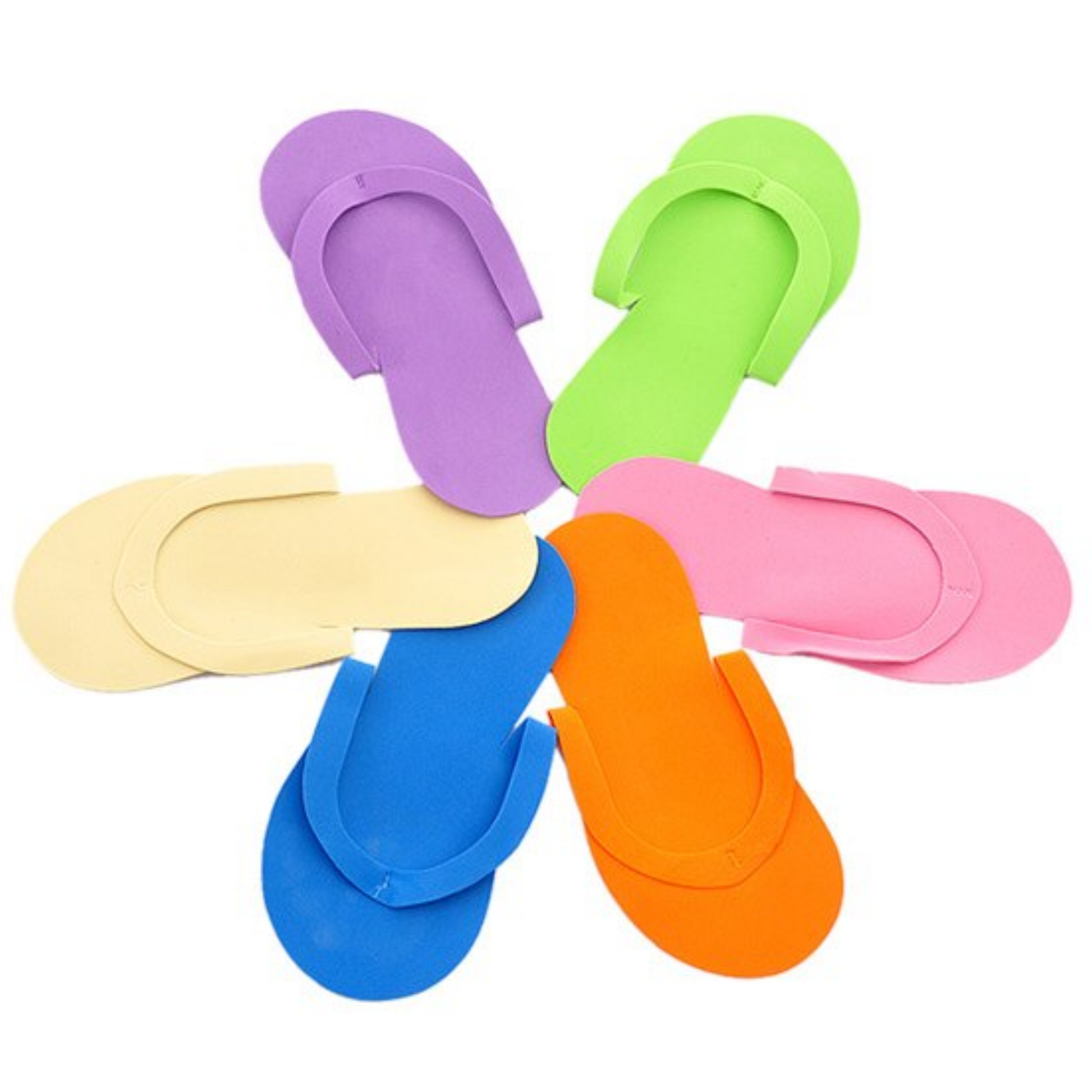 Offer a sanitary and comfortable pedicure service to your clients. Let your customers wear these fun and sturdy pedicure slippers out of the spa to avoid polish damage. Made with superior quality, highly durable EVA foam, a special material which is lightweight and 100% safe for your feet. 12 pairs/ bag - various colors.