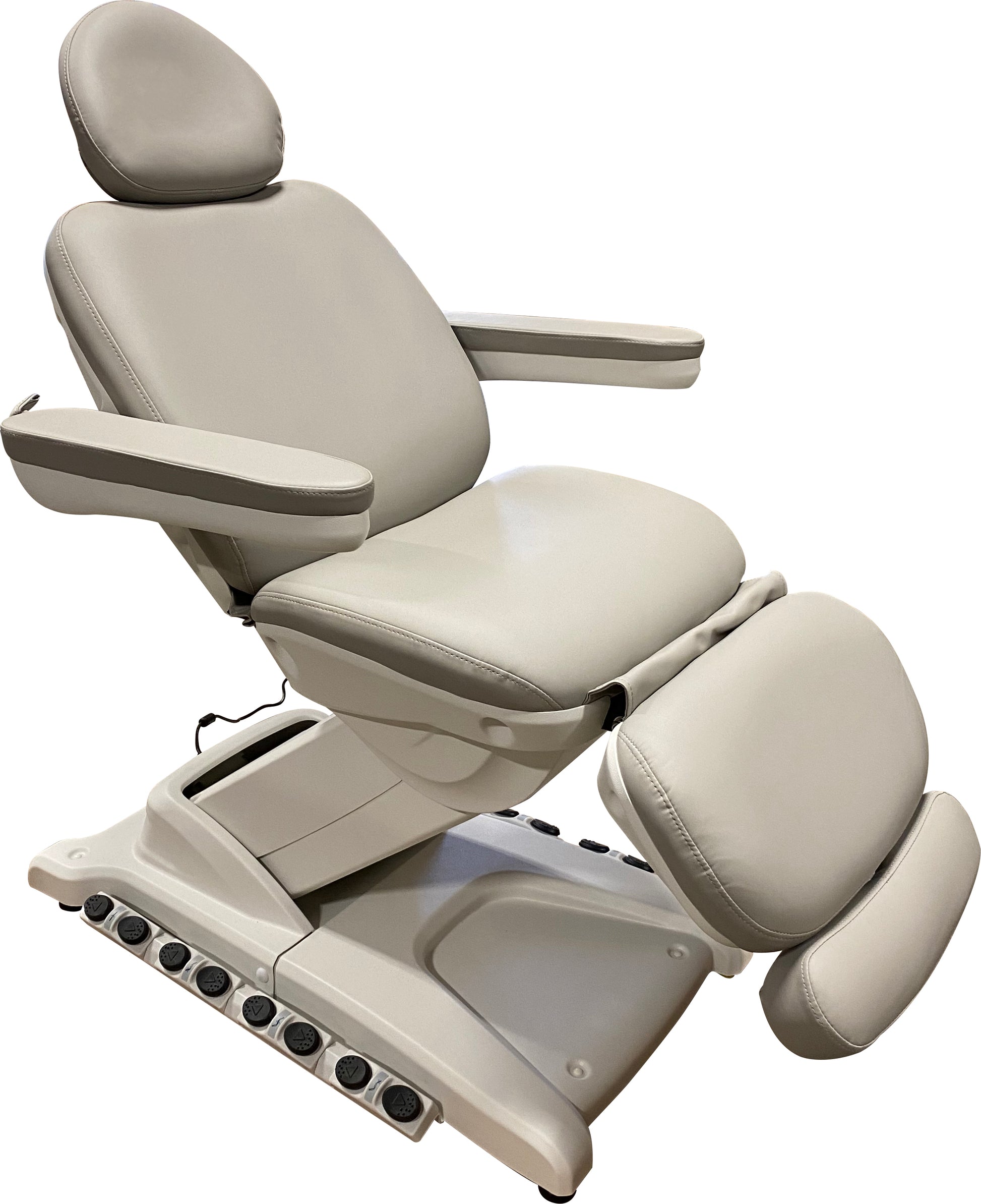 Experience our revolutionary Charleston 4-Motor Electric Facial Bed; by Golden Devon (D-3872). Fitted with 4 electro-hydraulic motors, this newly updated electric facial chair and med spa treatment chair features finer adjustments, quieter operations, and sleeker appearance that are fully integrated into simple, remote operation. Available in White or Grey color.